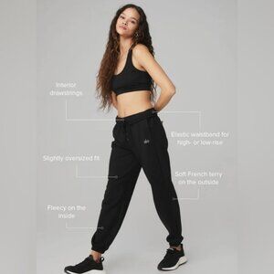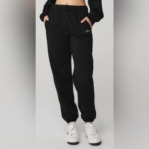 New with tags Alo Yoga Accolade Sweatpants Cool Chrome Logo on Black, with Pockets Oversized Fit