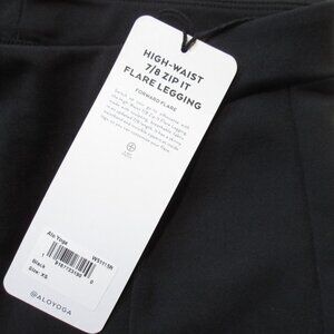 NWT Alo Yoga High-Waist 7/8 Zip It Flare Legging in Black Ankle Zip Pants XS