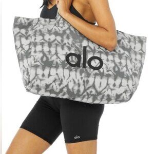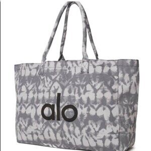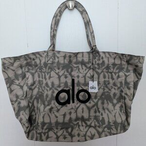 Brand new and never used! Oversized Alo Yoga tote bag in a gray tie-dye pattern. Cotton canvas with thick corded handles—great for the gym, errands, travel, or everyday use. Features the Alo Yoga logo on both sides.
