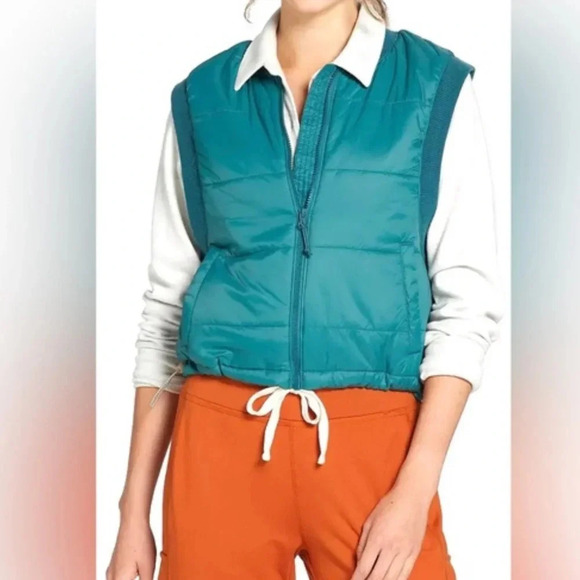 Teal puffer vest with zipper and pockets. Lightweight and very soft. #outdoor