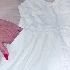NWT Altar’D State Ivory white Denim Romper sweetheart neckline bustier pleated