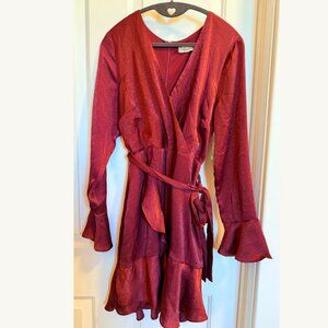 NWT Altar’d State Burgundy Ruffle Wrap Dress Size M