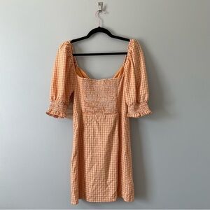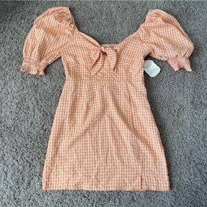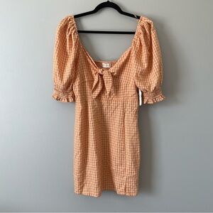 NWT Altar'd State Gingham Puff Sleeve Tie Front Mini Dress Apricot size L
