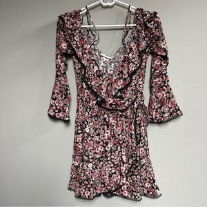 Altar’d State - Greta Floral Ruffle Mini Dress in Black with Pink flower print - Women's Small