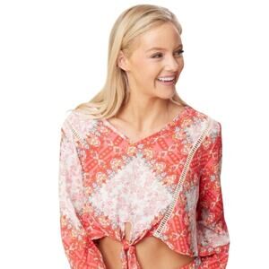 NWT Altar'd State Red/Salmon Floral Print Boho Festival Crop Top - SIZE MEDIUM
