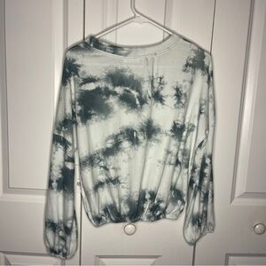 NWT Altar’d State Tie Dye Elastic Hem Cropped Shirt Size Small Blue White New
