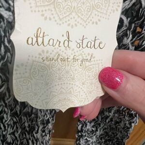 NWT Altar’d State gray w/silver metallic threading size S open weave sweater