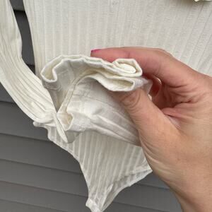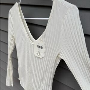 NWT Altar’d State size M Cream Ivory Ribbed Long Sleeve V-Neck Bodysuit