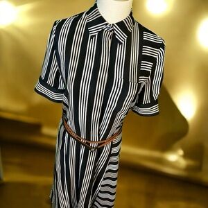 NWT Altuzarra ‘Kieran’ 100% Silk Black, White & Tan Belted Shirt Dress Size 38/6