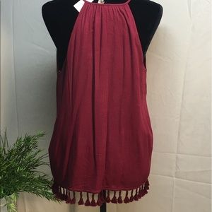 NWT Alya 100% Cotton peasant tank halter tie top. Tassels on the bottom. Fully lined.