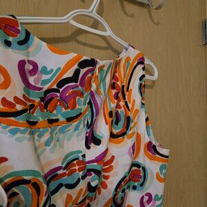 Brand new knee-length dress by Alyx. Features bold orange, blue and black paisley print all over. Zipper back. Stretchy material. Retails for $50.