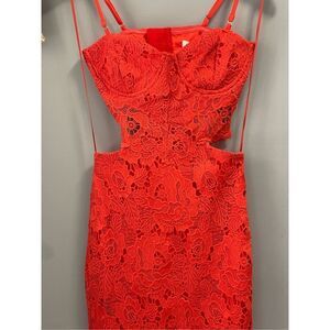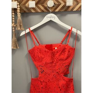 NWT red macramé less dress. The dress is stunning! So sexy! So flattering! Side cutouts. Back slit.