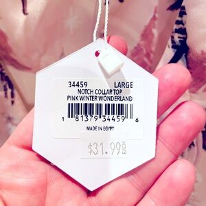 NWT Amanda Blu notched collar button down pajama top, short sleeves, polyester/spandex, snowy tree print, SUPER SOFT!!!