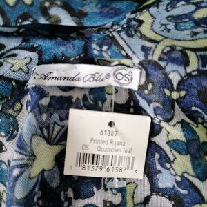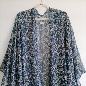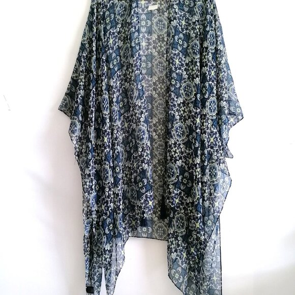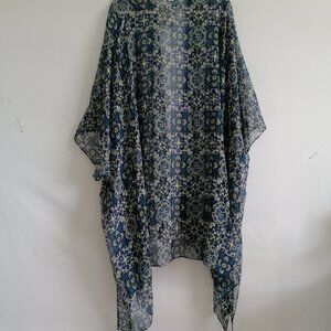 NWT Amanda Blue Womens Blue Open Front Tassel Hem Floral Cover Up One Size