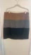 Chic and stylish colorblock wool blend skirt featuring brown, gray, and black hues. Perfect for any occasion.