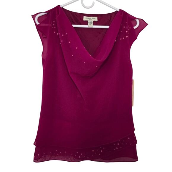 NWT Amanda Smith Vintage Formal Sequin Draped Blouse Size 6