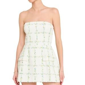 NWT Amanda Uprichard Bethany Tweed strapless yellow romper size extra large