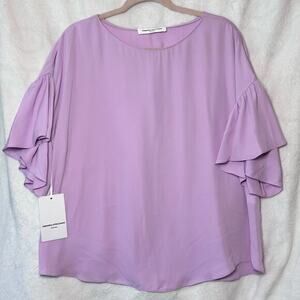 NWT Amanda Uprichard Ruffle Short Sleeve Flowy Blouse Size Large Purple