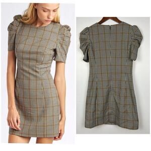 NWT Amanda Uprichard Westwick Puff-Sleeve Plaid Dress Sz S
