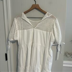 I absolutely adore this super pretty designer new with tags Amanda Uprichard crochet top short sleeve tiered tie sleeve mini dress