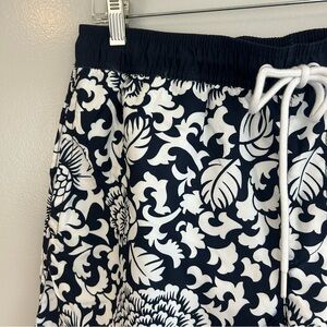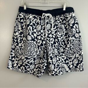 NWT Amazon Blue/White Floral Drawstring Hawaiian Swim Trunks Size Large