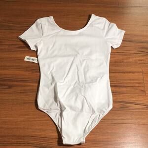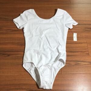 NWT Amazon Essentials Girls Basic Leotard Short Sleeve White Size XL / 12