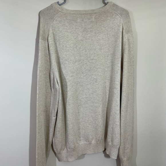 New crew neck men’s sweater in a cream with just a slight heather look The sweater is done in a beautiful knit. Very nice quality Easy care. Measurements are chest flatfold about 25”. The total length from the top of shoulders to bottom about 28”. No visible flaws. Any questions please ask and we will answer ASAP. P