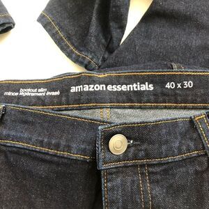 Amazon Essentials. Men’s jeans. New with tags. Dark wash. Color: blue. Slim fit bootcut. Size 40x30. Cotton blend. Five pockets. Everyday wear. Offers welcomed.