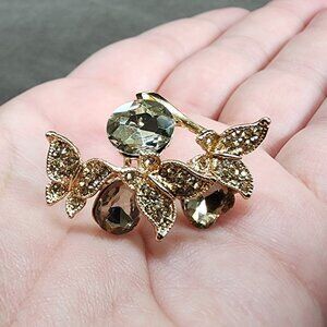 NWT Amazon Gold Toned Jeweled Butterfly Fashion Ring Size 4