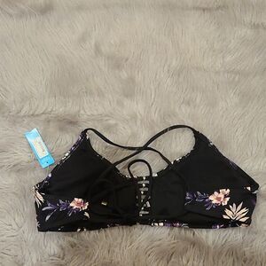 NWT‎ Ambrielle black floral swimsuit top with tie back size xl