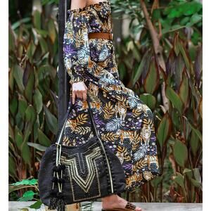 NWT America & Beyond Embellished Tote Black Limo Embellished Shoulder Bag
