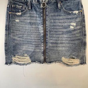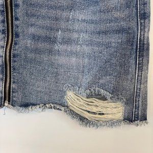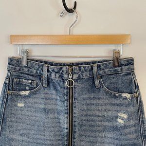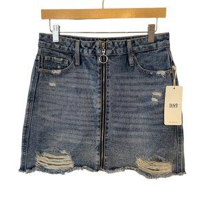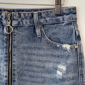 NWT American Bazi Womens Size M Denim Jean Skirt Full Zip Front Distressed Mini