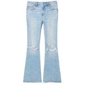 NWT American Eagle 18 Short AE Next Level Ripped Low Rise Flare Jean Light Wash