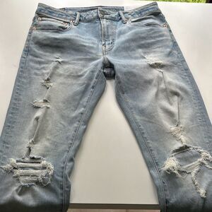 NWT American Eagle Airflex + Stacked Skinny Destroyed Light Wash Jeans 34/39.5
