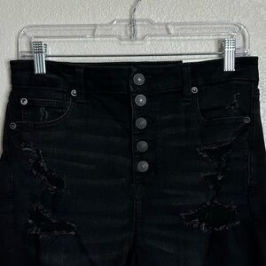 NWT American Eagle Black Curvy Super High-rise Distressed Shorts, Size 10