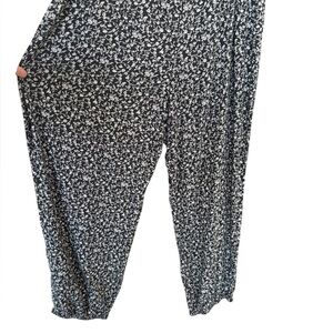 NWT American Eagle Black White Floral Print Ruffle Jumpsuit Elastic Waist XL