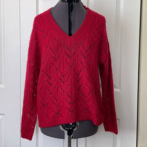 NWT American Eagle Chevron Knit Red Sweater, Size M 🗣LAST CHANCE🗣