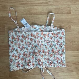 NWT American Eagle Floral Smocked Cropped Corset Top Size Large