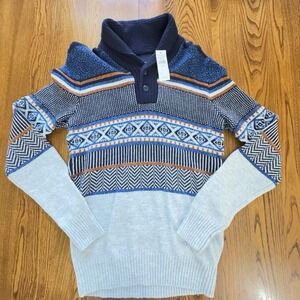 NWT American Eagle Men's Cotton Wool Blend Fair Isle Shawl Collar Sweater Size S