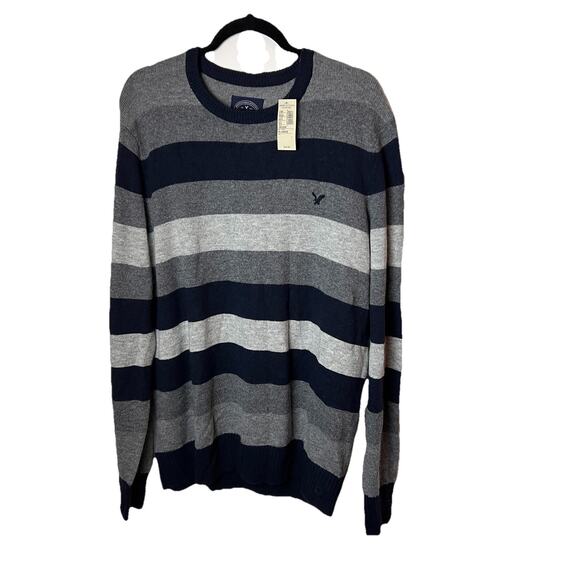 NWT American Eagle Men's Sweater Size X-Large Athletic Fit Gray Blue Striped