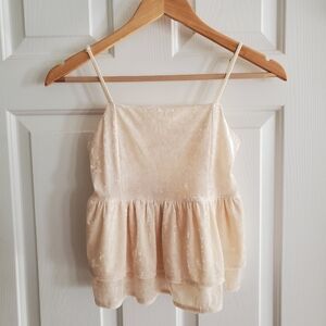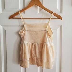 NWT AMERICAN EAGLE OUTFITTERS cream crushed velvet smocked tiered tank top. Adjustable spaghetti straps Back smocked detail for comfort size x small