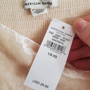 NWT American Eagle OUTFITTERS cream velvet smocked tiered tank top size XS