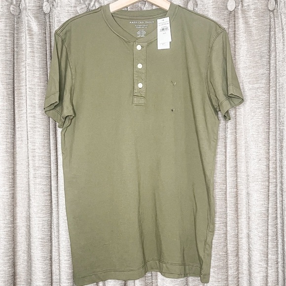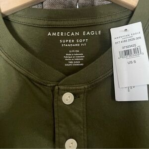 NWT American Eagle Olive Green Short Sleeve Henley T Shirt Size Small