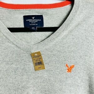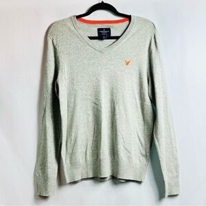 NWT American Eagle Outfitters Classic Fit Light Gray Long Sleeve V-Neck Sweater