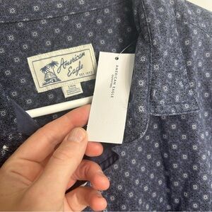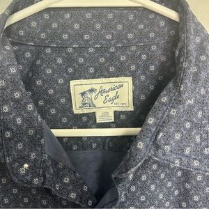 NWT American Eagle Outfitters Dark Blue Patterned Casual Button Up Shirt Large