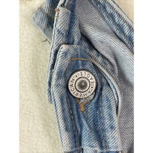 This NWT American Eagle Outfitters medium denim pinafore dress is a stylish and versatile addition to any woman's wardrobe. Made from a comfortable cotton blend fabric, this sleeveless dress features a classic round neck and button closure. The solid blue color and short dress length make it perfect for casual occasions or travel during the summer, fall, or spring seasons. The overall dress style offers a trendy and fashionable look that is sure to make a statement. Right button was reversed during the making of garment. The area that is now in front is a little rough. Easy fix!!! SEE PICS