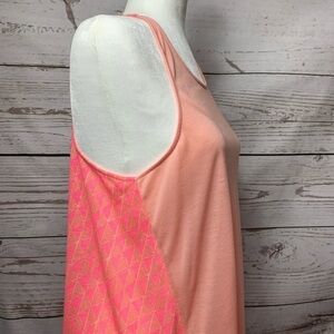 This fun tank top has a zipper in the back for extra detail & triangle patterns in the back.