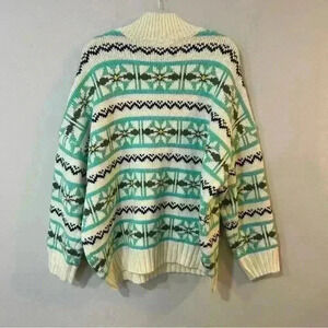NWT American Eagle Oversized Fairisle Mock Neck Sweater Blue White Crewneck XL