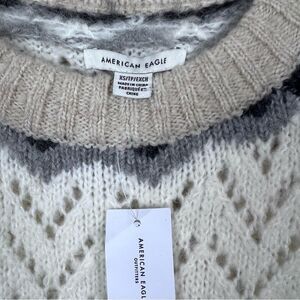 NWT American Eagle Sweater Oversized Cream Brown Knit Size XS