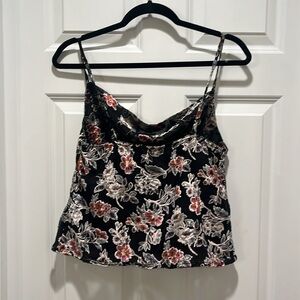 American Eagle Floral Cowl Neck Velvet Floral Tank